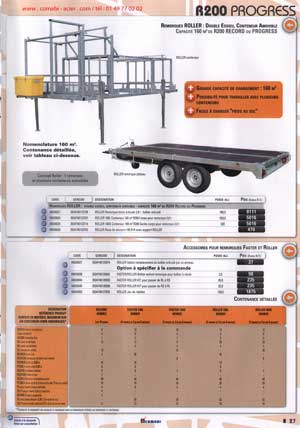 cplateau acier demi-largeur de 0.36 m, crochets sertis, à crochets soudés et plateua aluminium de demi-largeur de 2 m, 2.5 m , 3 m et de 0.8 m . |